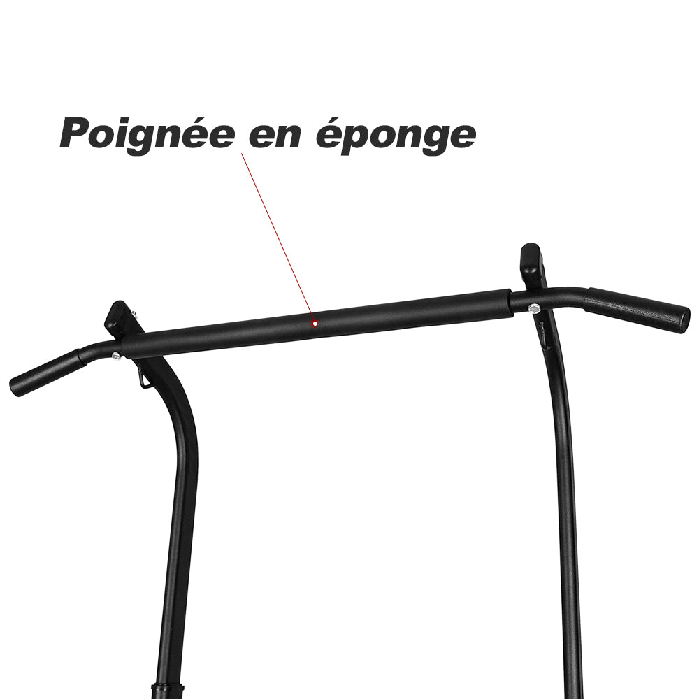 Le dip stand de home fitness code peut être utilisé pour entraîner votre poitrine, votre dos, vos bras et vos muscles abdominaux en effectuant des pompes, des tractions, des dips, des élévations d'abdominaux et bien d'autres exercices.