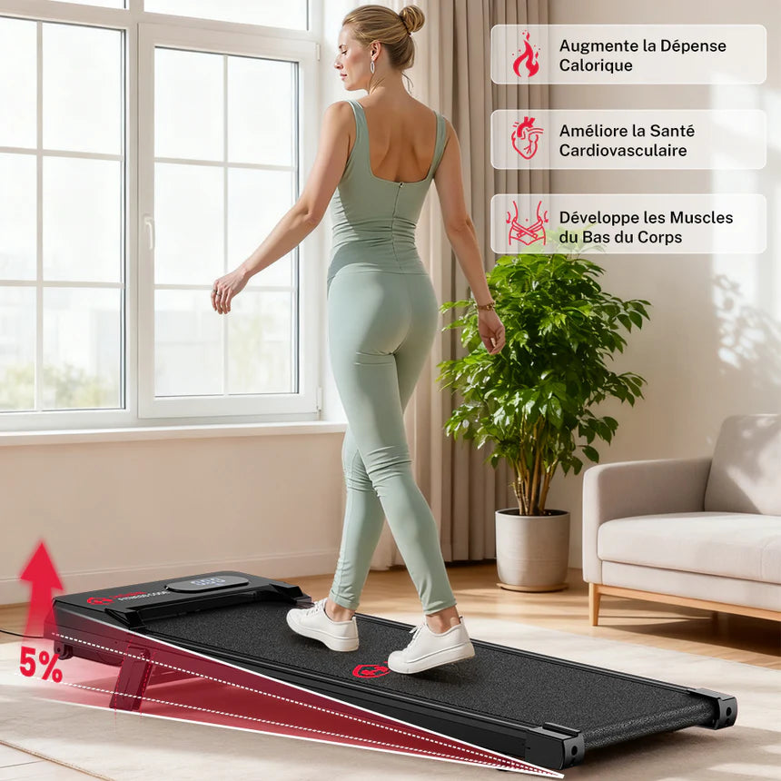 Si vous cherchez un tapis de course pour optimiser vos pas quotidiens à la maison, le tapis de course T7 est fait pour vous. Doté d'une inclinaison manuelle de 5 %, il vous permet d'ajuster l'intensité de votre entraînement et d'optimiser vos performances. Que vous travailliez à domicile ou que vous vous divertissiez en regardant des vidéos, vous pouvez rester actif en même temps. Son format compact et ses roulettes de transport permettent de le glisser facilement sous vos meubles lorsqu'il n'est pas utilisé : un tapis de course idéal pour les espaces restreints.